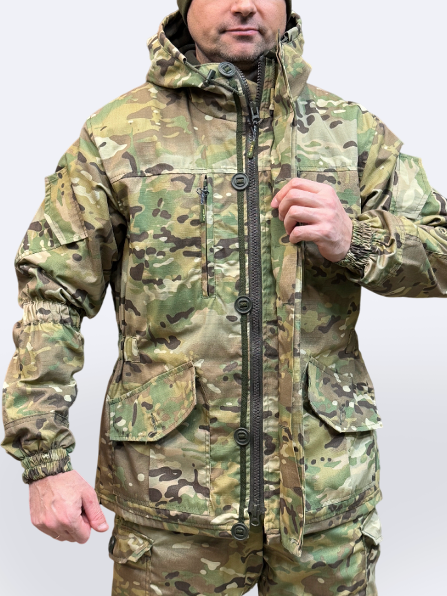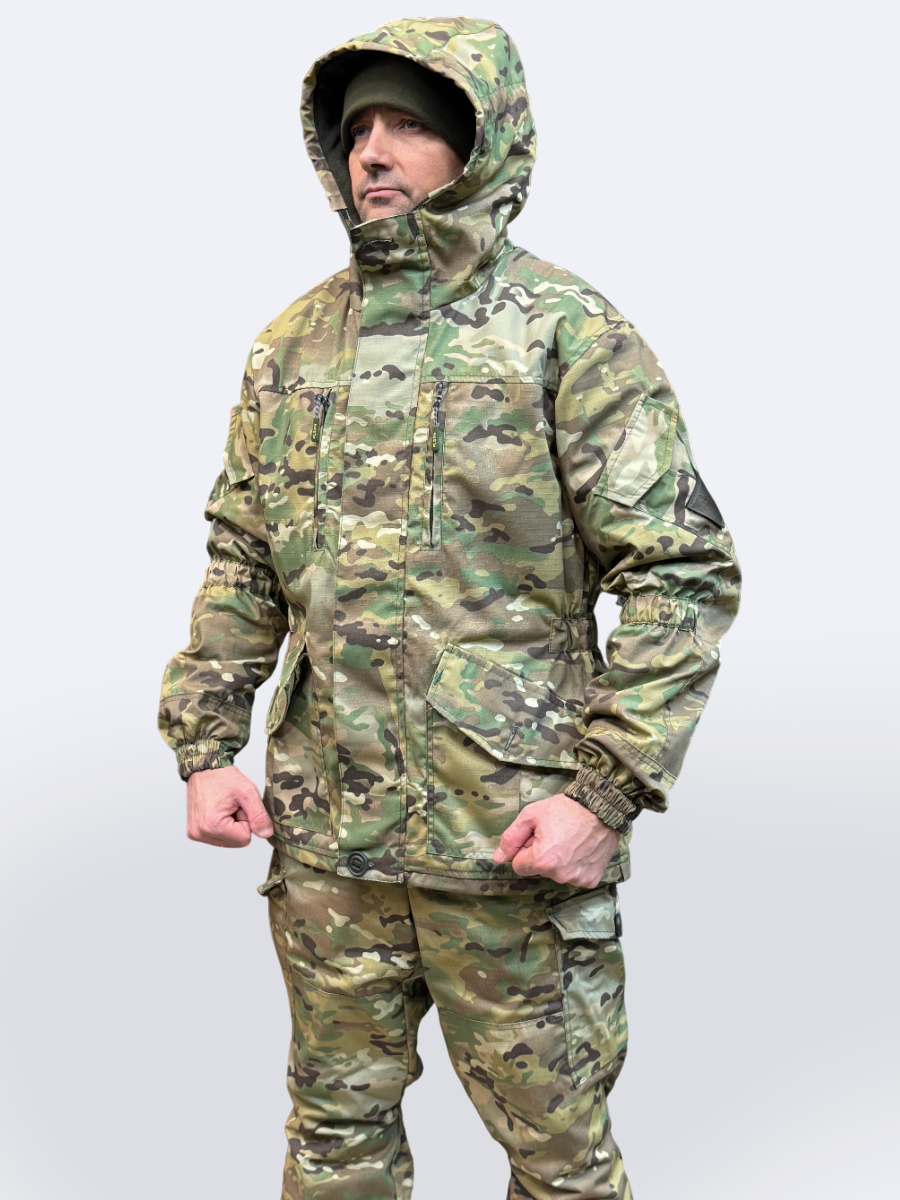 Демисезонный костюм Горка 5 от Пилигрим выполнен из прочной ткани рип-стоп с армированными нитями. Благодаря сочетанию хлопка и полиэстера, костюм хорошо дышит, устойчив к износу, не даёт усадки и не теряет цвет после стирок и на солнце. Материал не шуршит и обладает водо- и грязеотталкивающими свойствами.