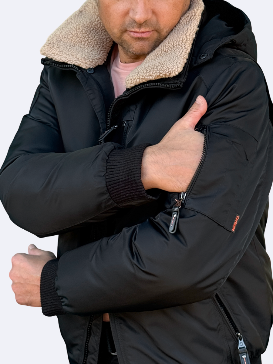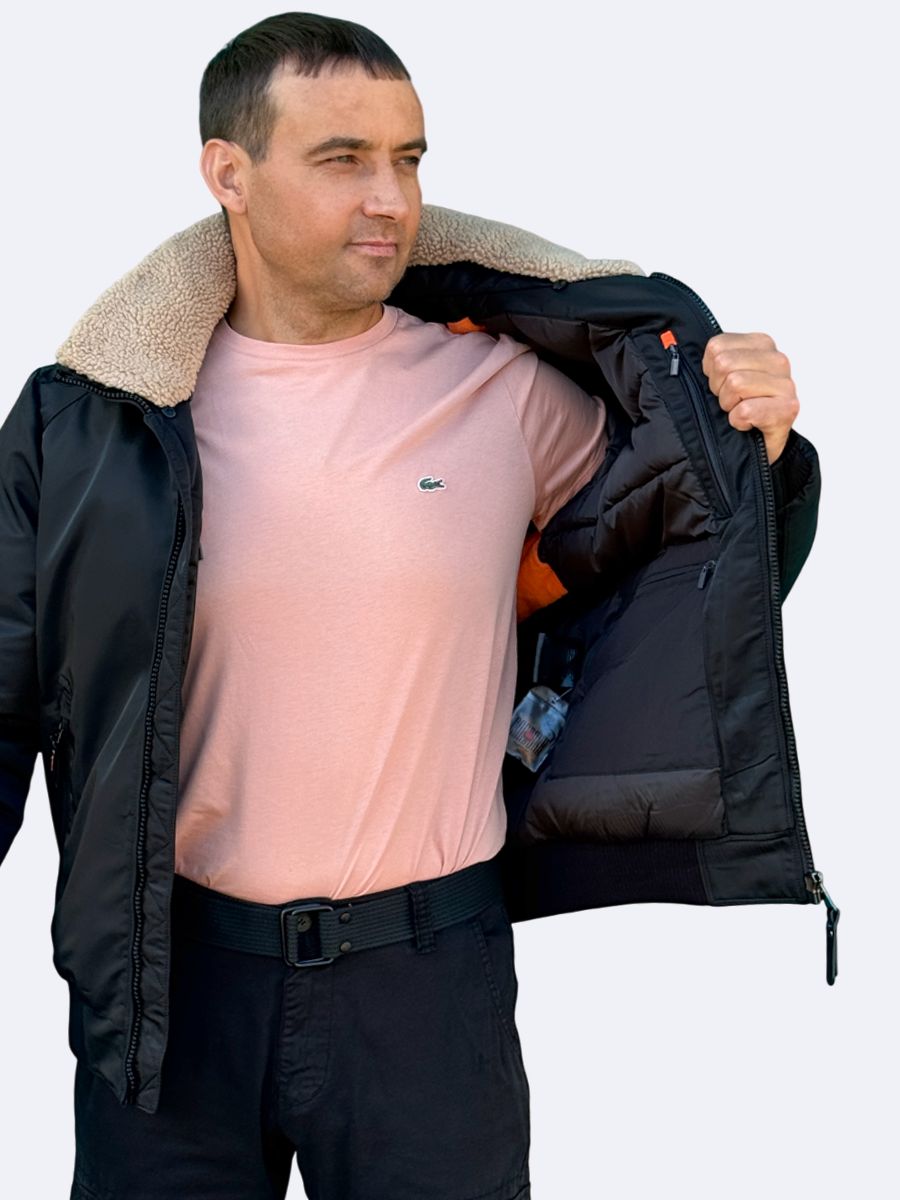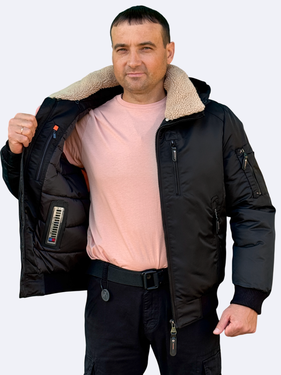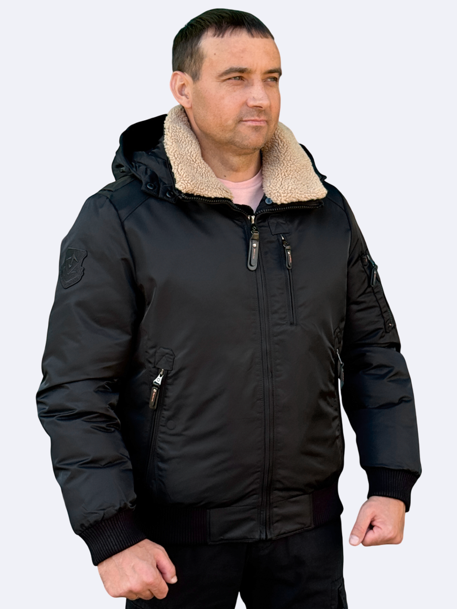 Мужская куртка-бомбер AVIATOR зимняя с капюшоном и меховым воротником — купить онлайн