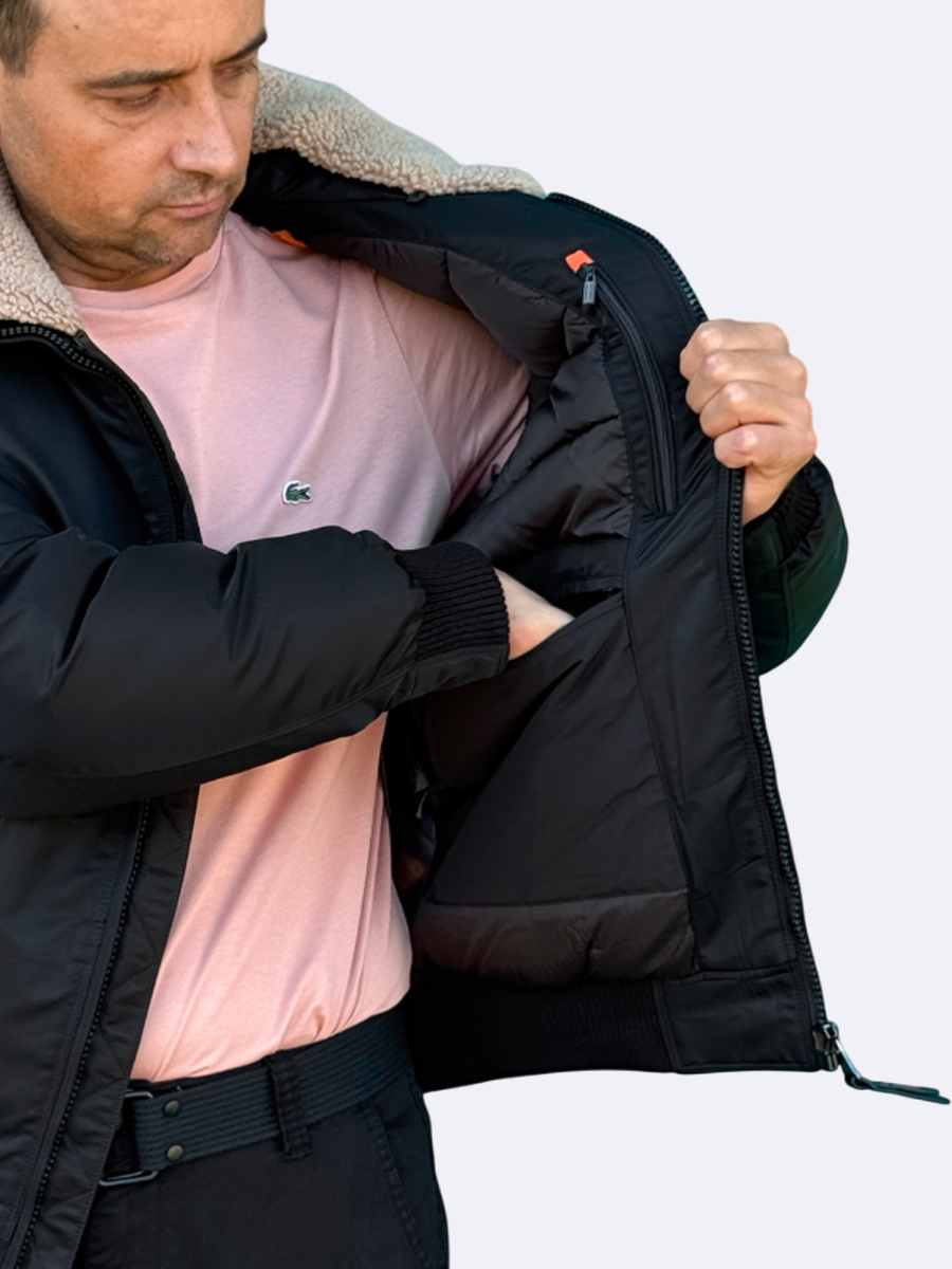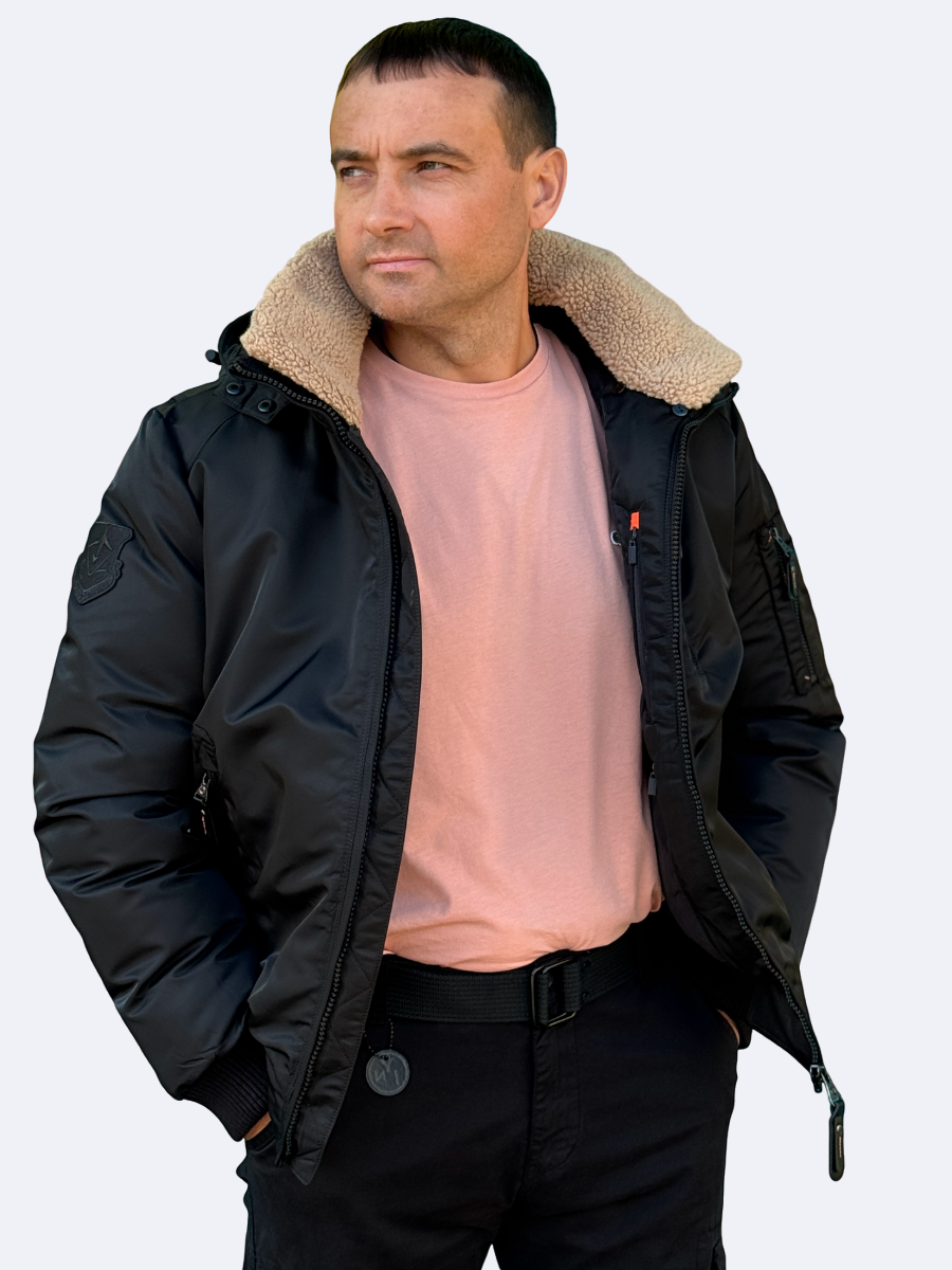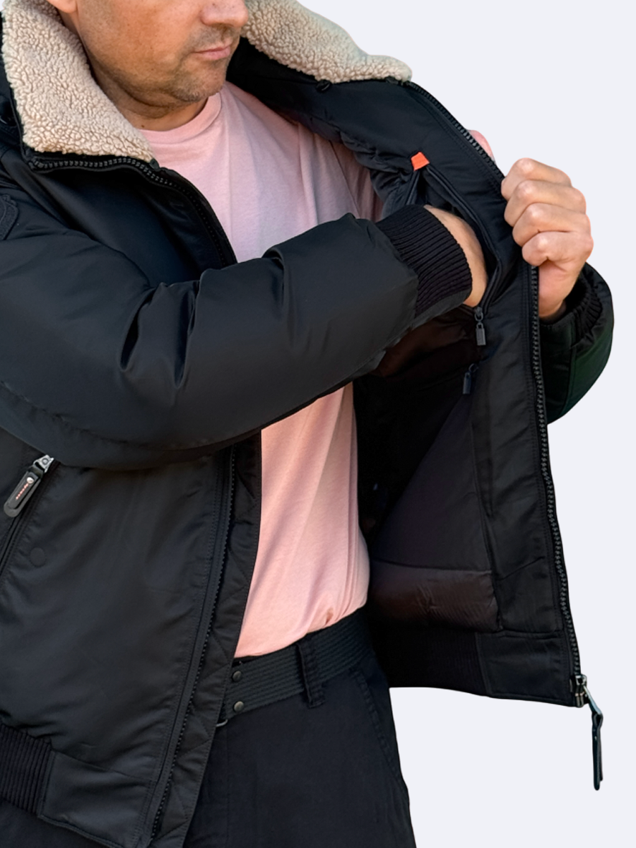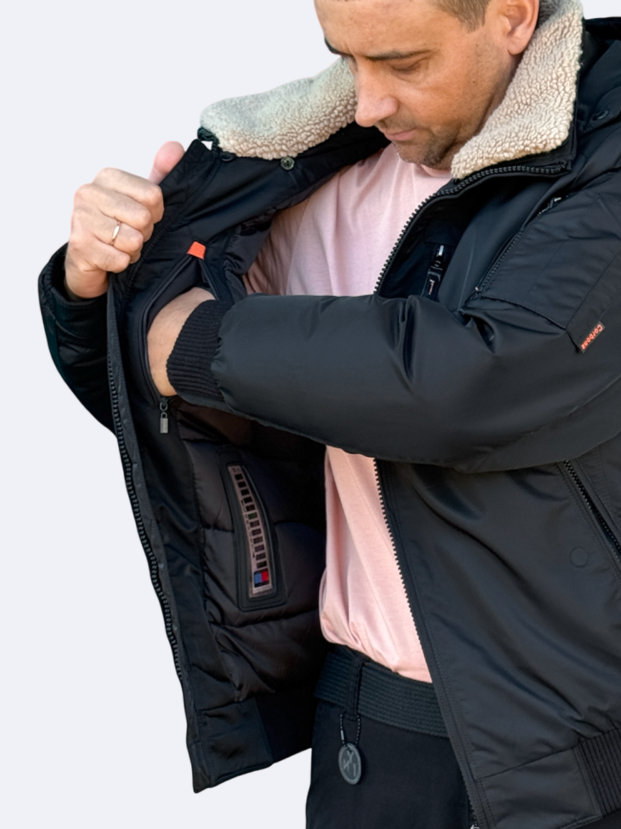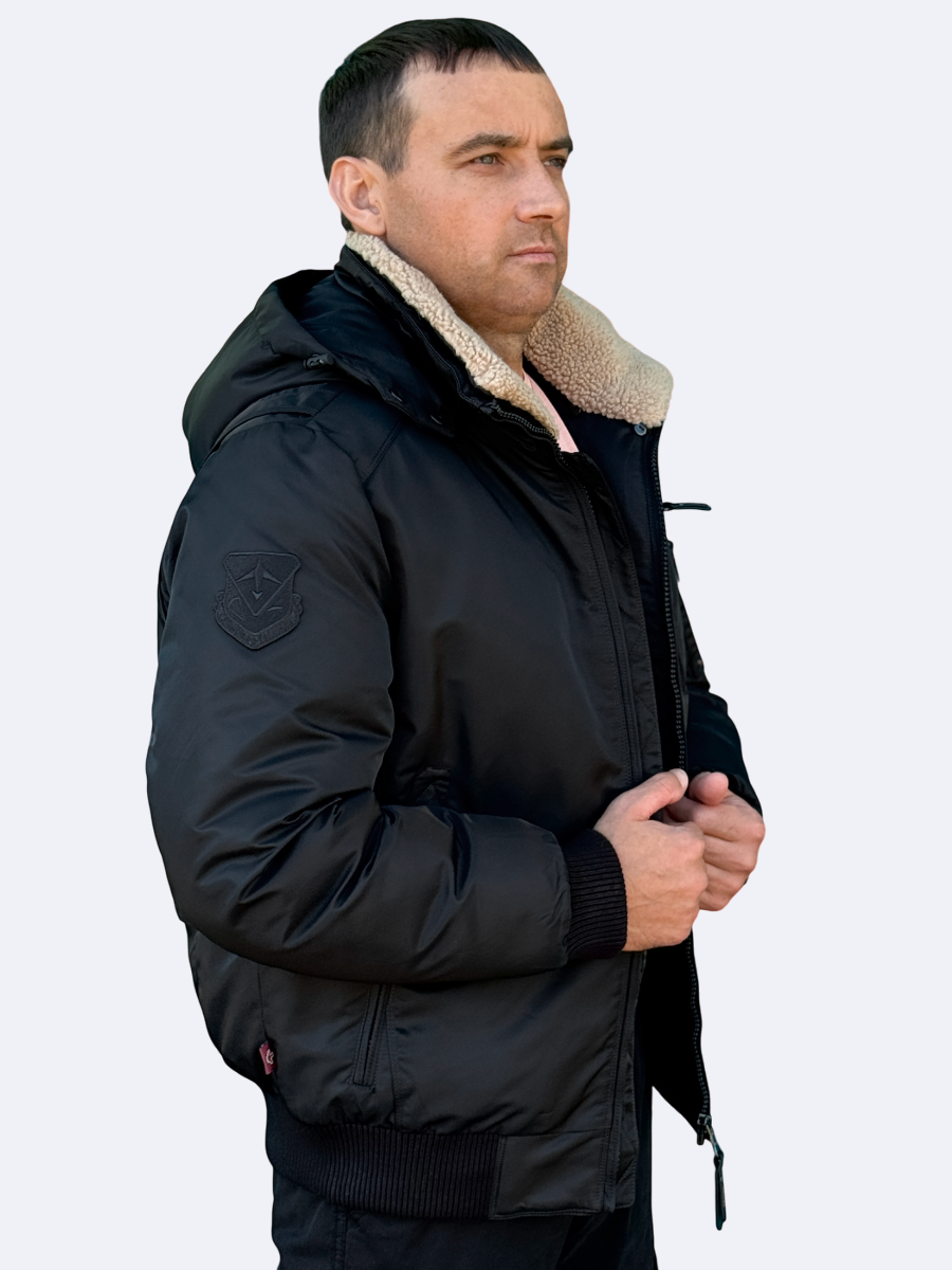 Мужская куртка-бомбер AVIATOR зимняя с капюшоном и меховым воротником — купить онлайн