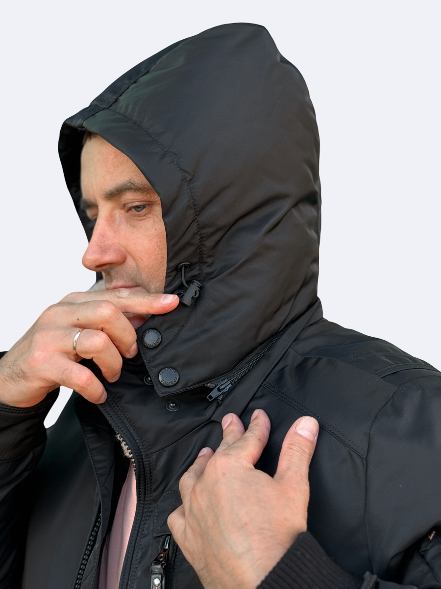 • Отстёгивающийся шерстяной воротник и утеплённый капюшон.