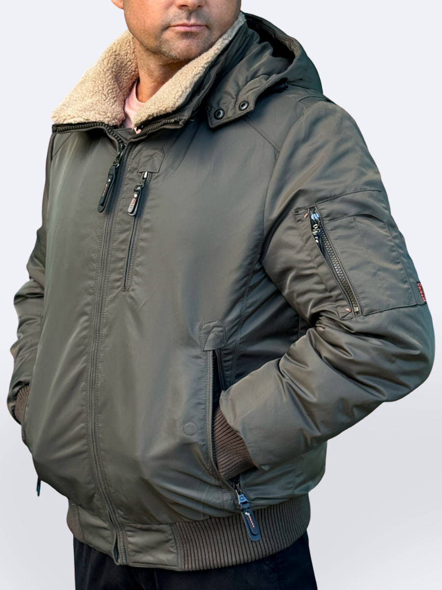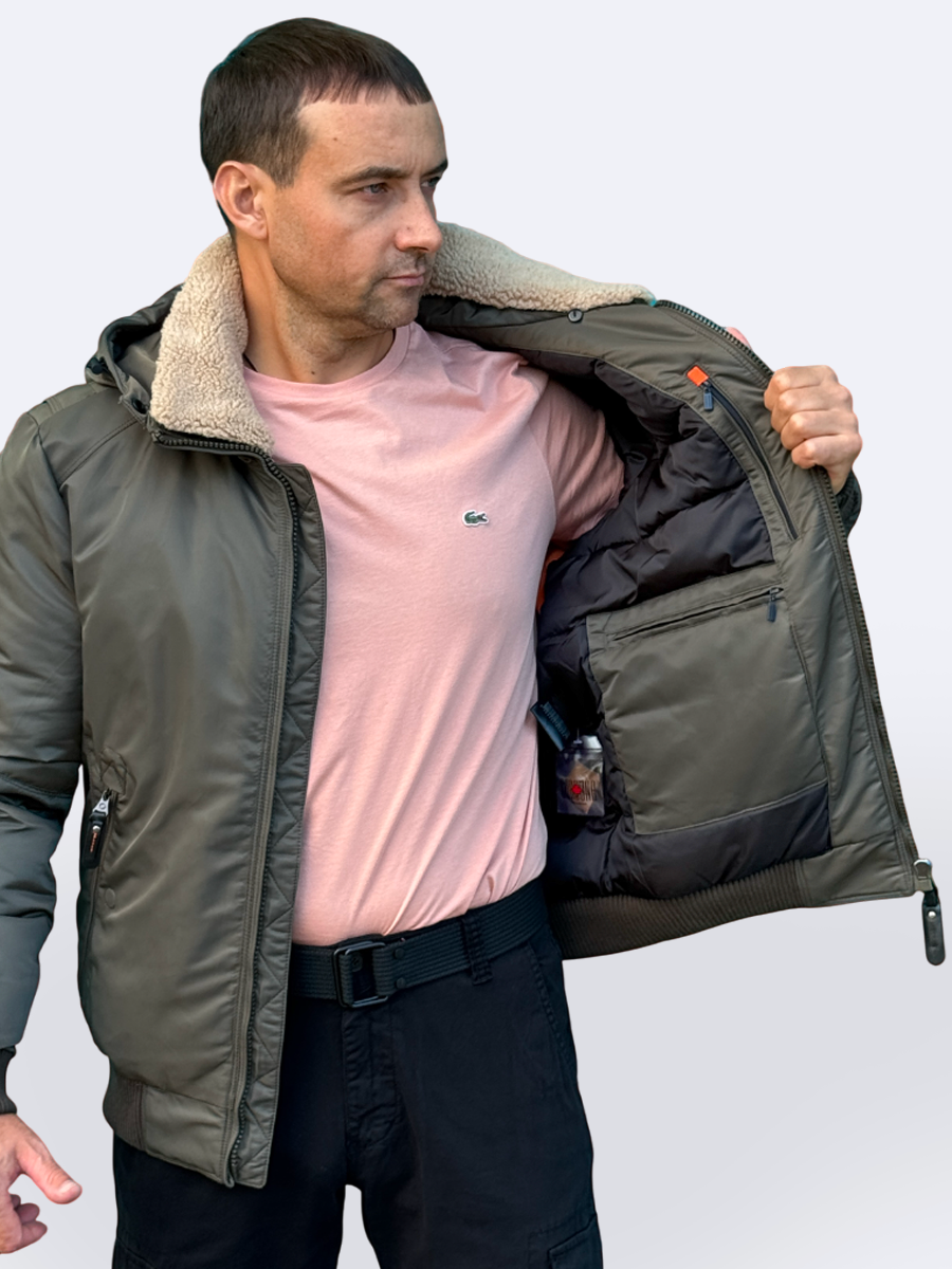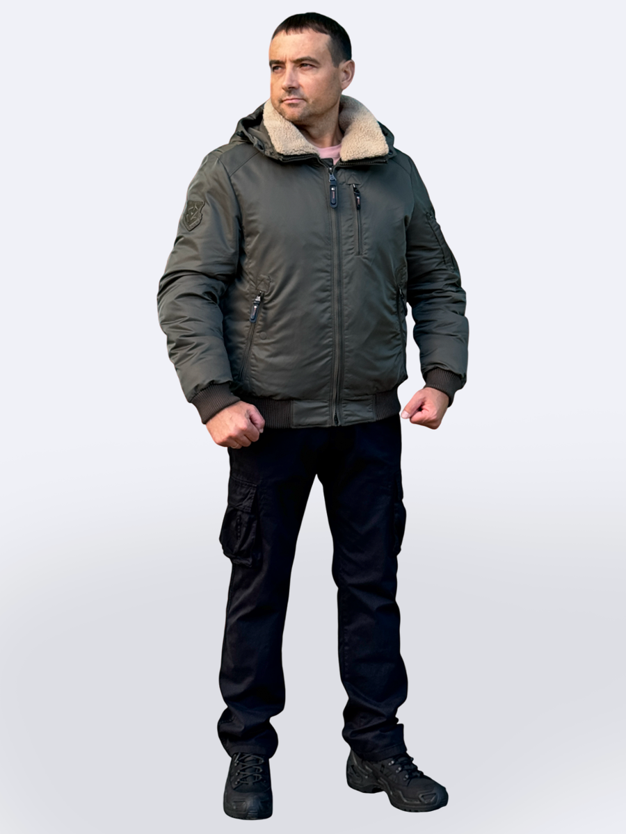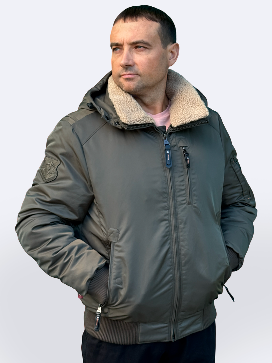 Мужская куртка-бомбер AVIATOR зимняя с капюшоном и меховым воротником — купить онлайн