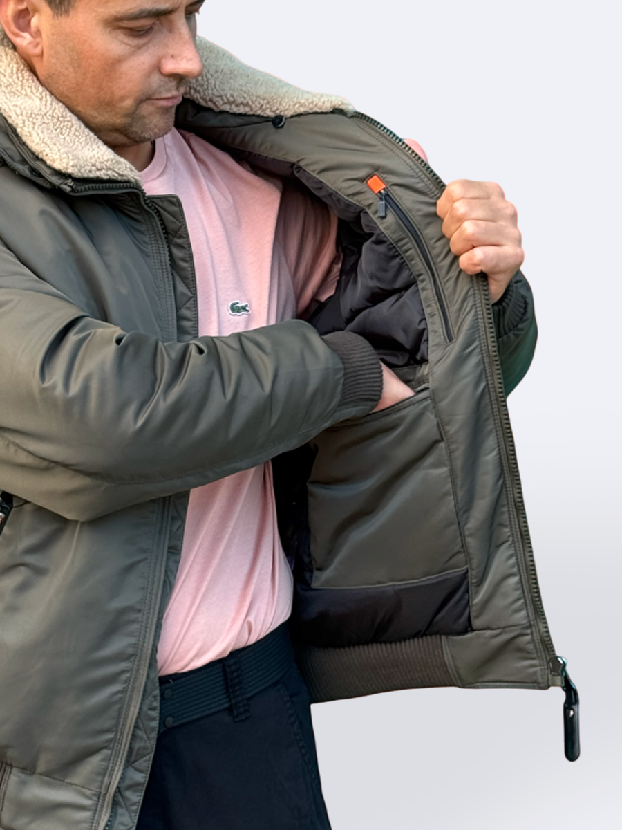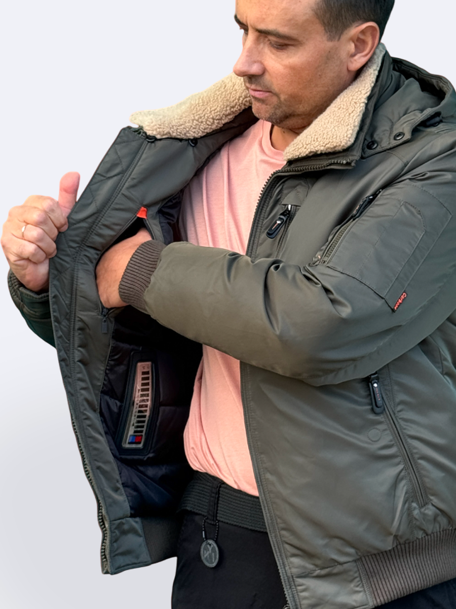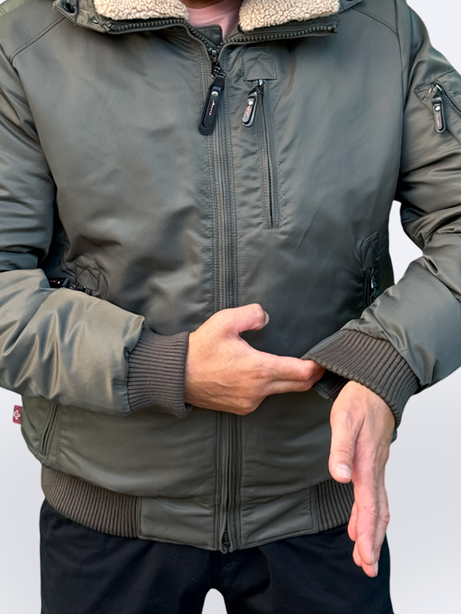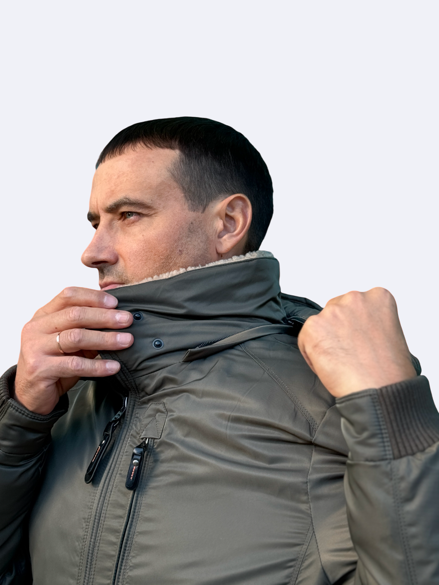Мужская куртка-бомбер AVIATOR зимняя с капюшоном и меховым воротником — купить онлайн