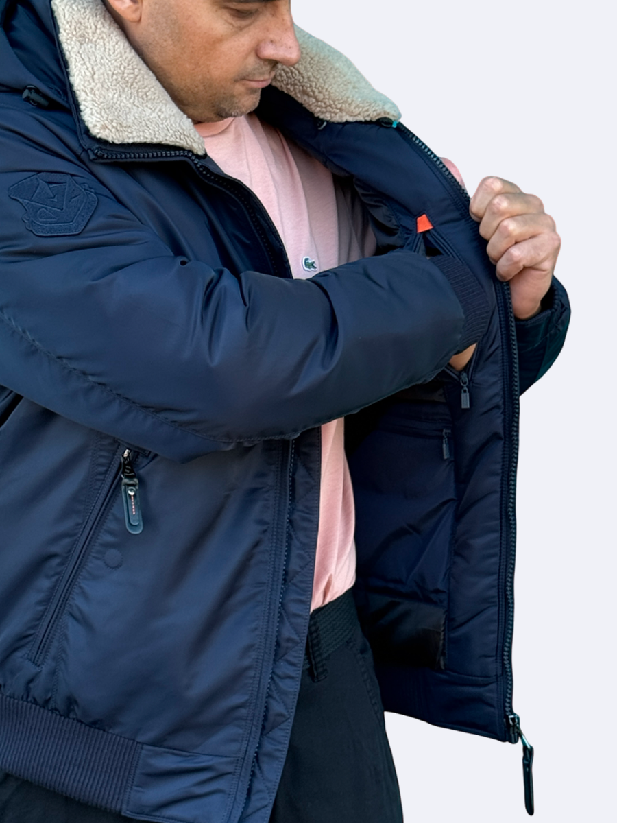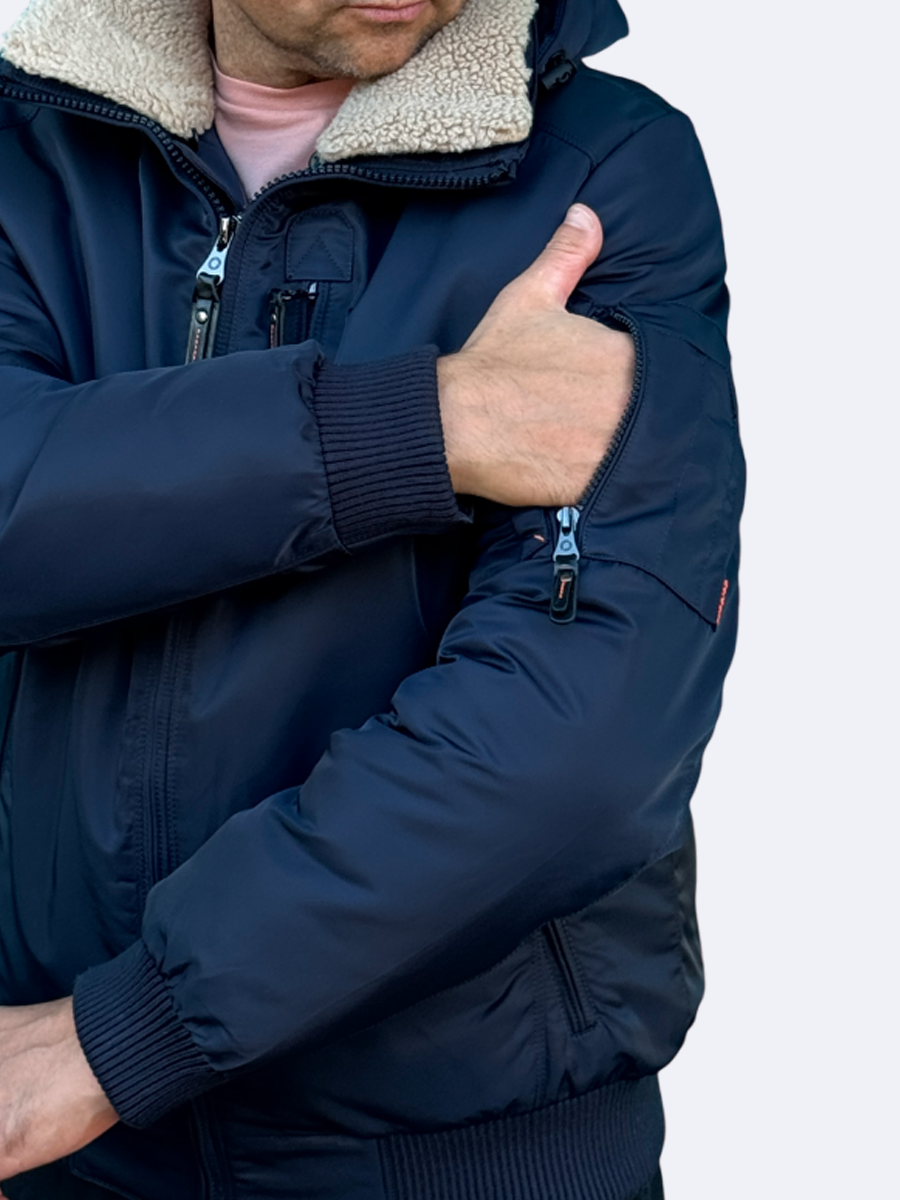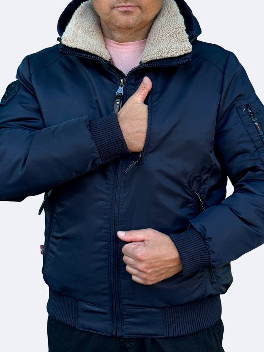 Отстёгивающийся шерстяной воротник и утеплённый капюшон.