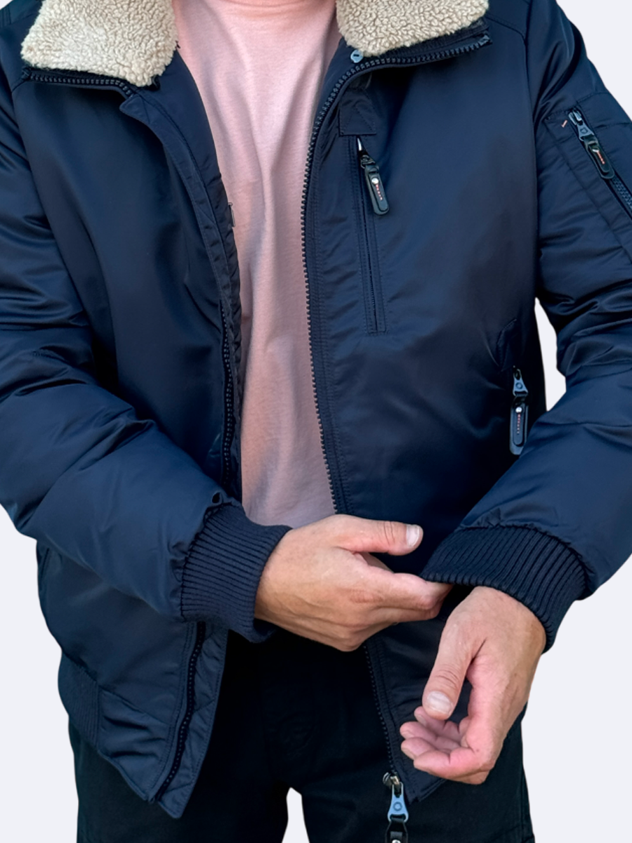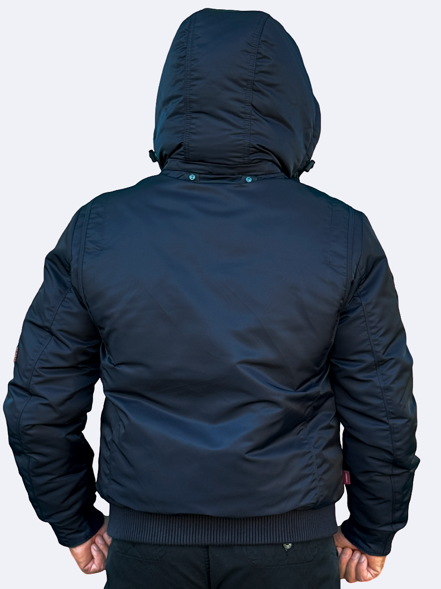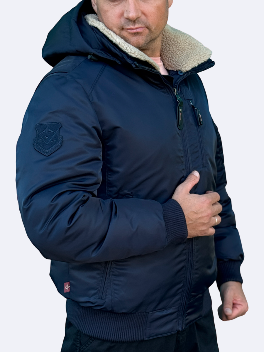 Отстёгивающийся шерстяной воротник и утеплённый капюшон.