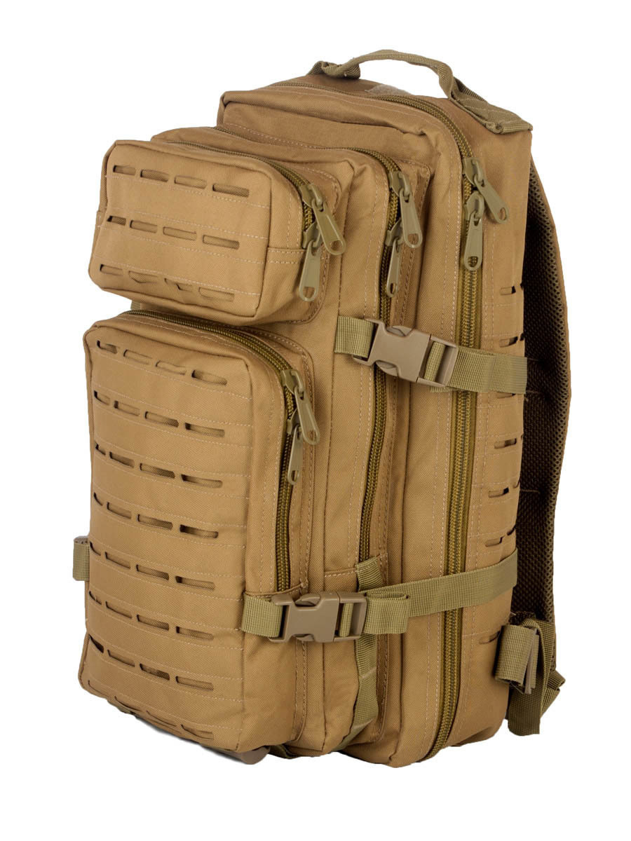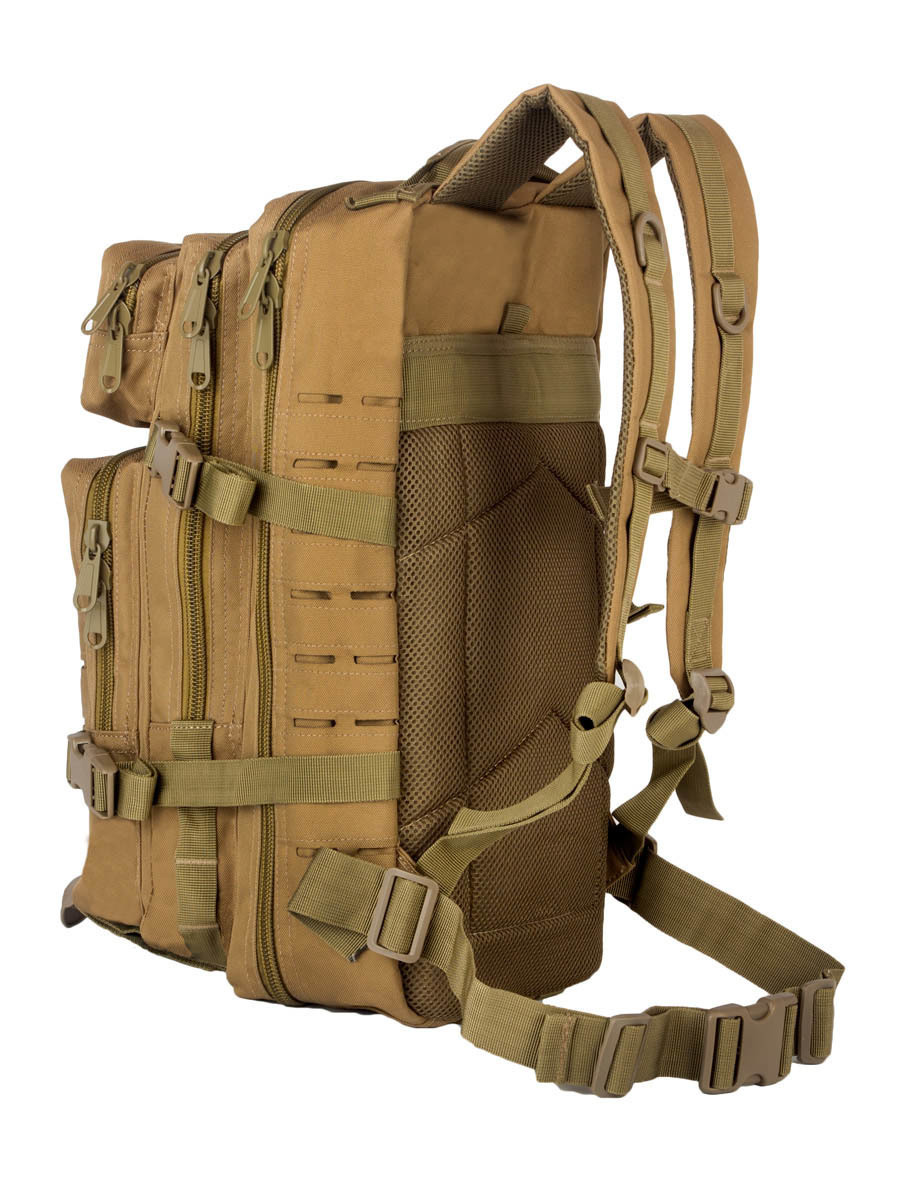 • Общее количество ячеек системы Молле (Molle) - в 5-ти группах 12+28+36=76 шт; Оборудованы: передняя, боковые и нижняя стороны; Тип - двухслойный, верхний кордуровый слой с лазерной резкой + внутреняя простроченная нейлоновая стропа;