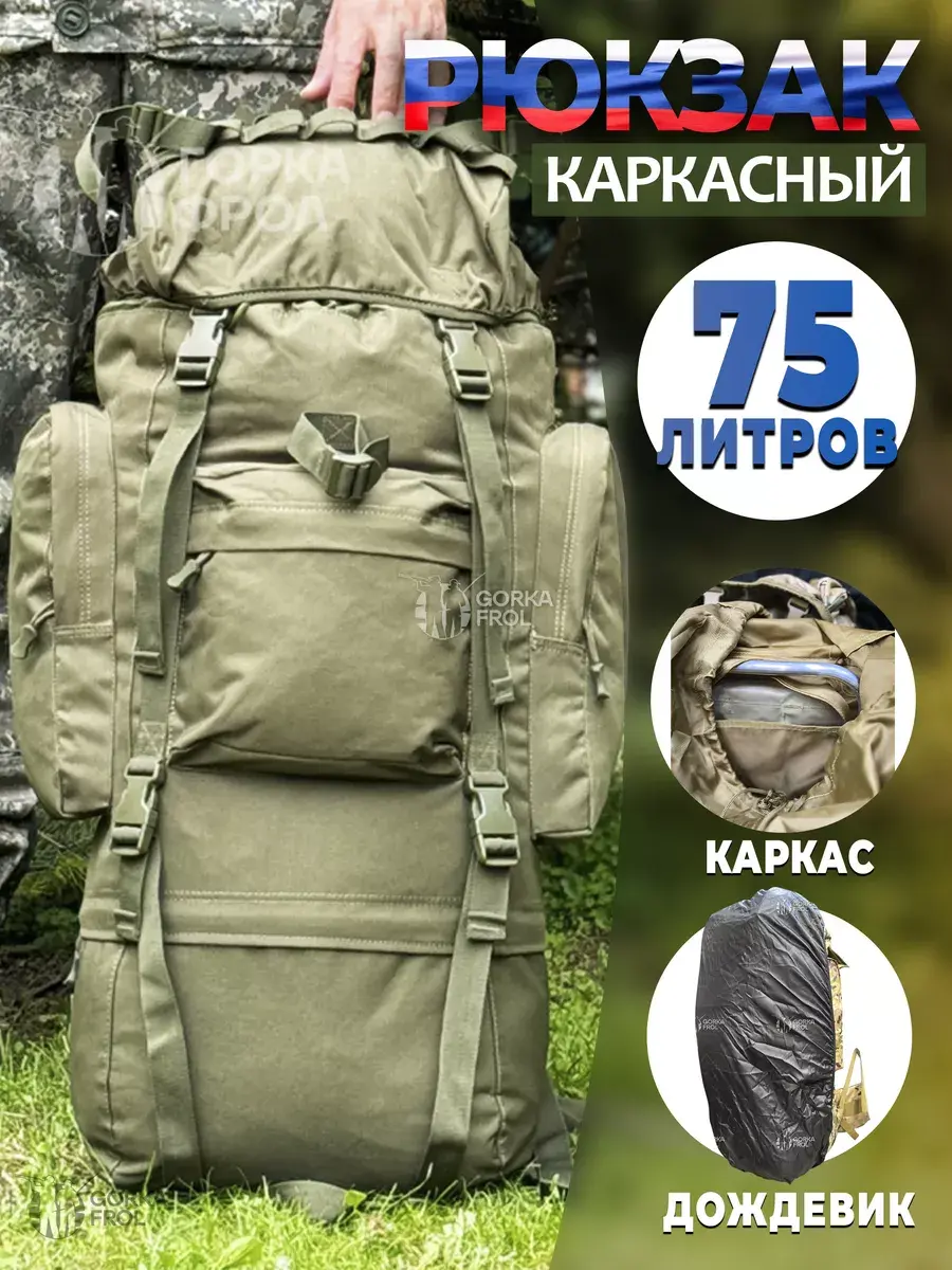Рюкзак тактический Grizzly 75 л Cordura 500D Олива – туристический рюкзак с алюминиевым каркасом