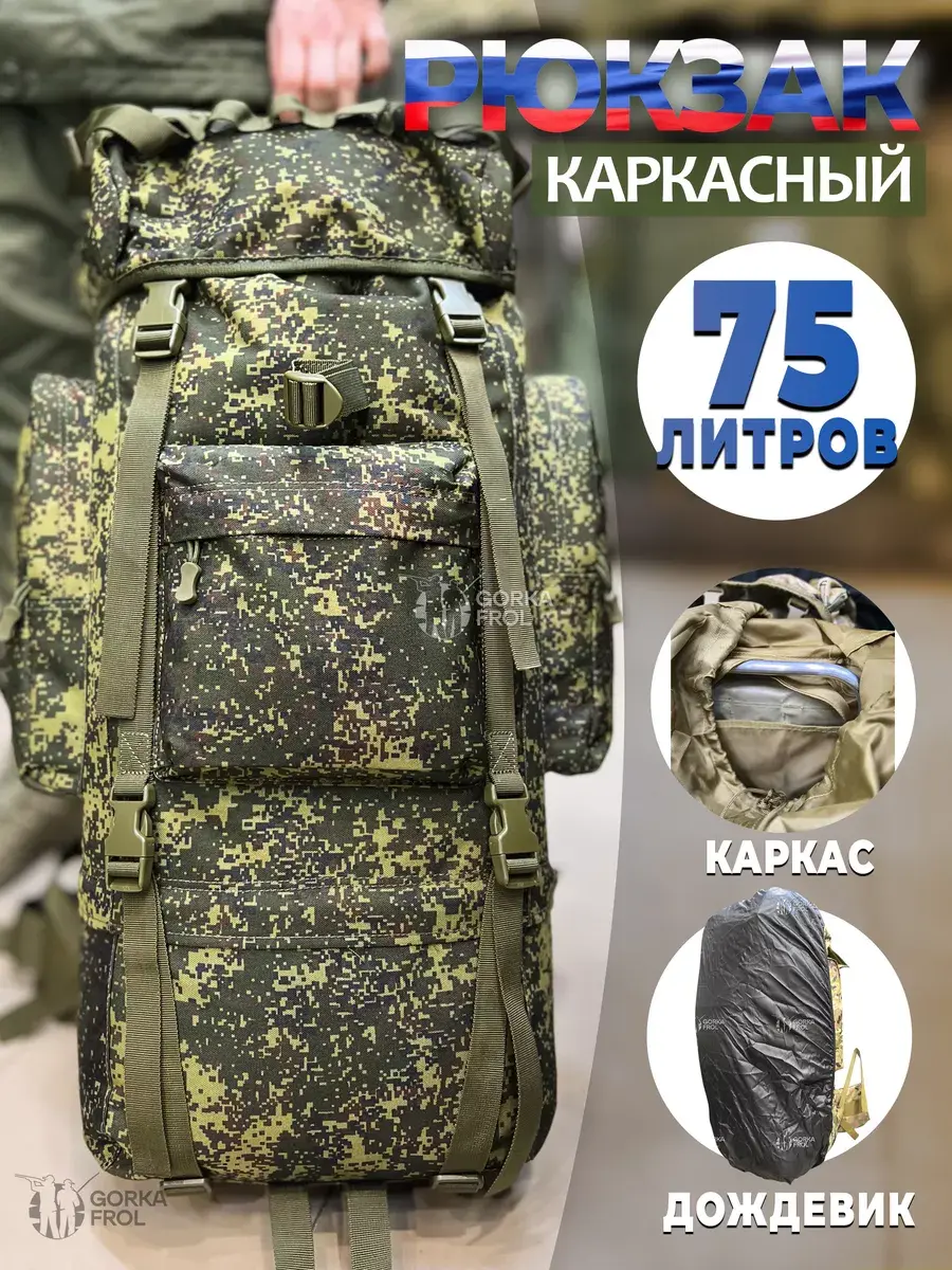 Рюкзак тактический Grizzly 75 л Cordura 500D Пиксель – туристический рюкзак с алюминиевым каркасом