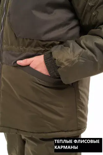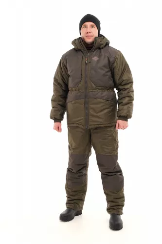Основная ткань: КОШАЧИЙ ГЛАЗ 250 г/кв. м Состав: 100% ПЭ Покрытие: ВО Мембрана: 10000/10000 Подклад: ТАФФЕТA 292Т +ФЛИС Состав: 100% ПЭ • АЛОВА Б/П 130 г/кв. м Состав: 100% ПЭ Утеплитель: ЭКОЛОФТ Зимний костюм "Егерь" великолепное решение для любителей активного отдыха в зимний период. Костюм из мембранной ткани, показатели 10000/10000. Благодаря современному утеплителю, костюм обладает легкостью и обеспечивает комфорт в самые суровые морозы (температура экстрим -45). Изделие сшито из ткани "кошачий глаз". Ткань с переплетением "Добби" повышенной прочности и плотности. Поверхность текстурная, на изнанке имеется высокотехнологичное полиуретановое покрытие для защиты от влаги и ветра, которое позволяет ткани хорошо пропускать воздух. Лицевая поверхность обработана водоотталкивающими пропитками. КУРТКА 5 карманов/ ПОЛУКОМБЕЗ 3 кармана • Куртка прямая с утяжкой по низу, с удлиненной спинкой. • Съемный капюшон на молнии. • Внутренняя кулиса со шнуром по талии для лучшего прилегания. • Четыре вместительных кармана, утепленные флисом. • Один внутренний карман. • Ветрозащитная внутреняя планка • Регулировка низа брюк. • На поясе полукомбинезона резинка для более плотного прилегания. • Два подкройных кармана на полукомбинезоне, утепленные флисом. • В области пройм полукомбинезона вставлены резинки для лучшего прилегания к телу.